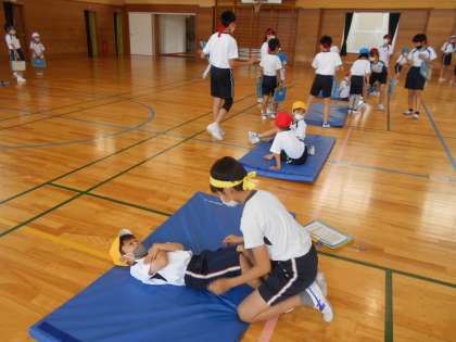 握力、長座体前屈、反復横跳び、上体起こし、どれも難しかったけど優しい6年生さんと一緒だったので安心してできました。