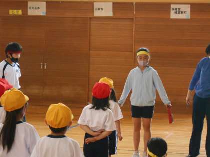 1年生 6年生さんと体力テストをしたよ