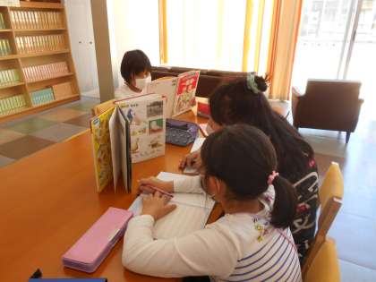 4年生になって2か月が経ち、子供たちも4年生の学習になれてきた頃、自主学習の進め方を確認しています。今年は、子供たちの「やりたいこと」をテーマにするということで、図書室で自分の好きなことを調べました。