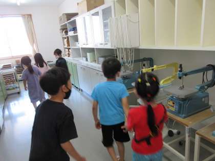 今日は、特別教室等を探検しました。日頃入ることのできない準備室も今日は特別に探検し、興味津々の子供たちでした。