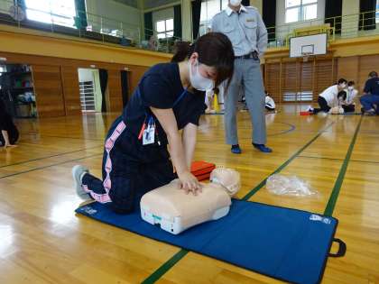AEDの操作やコロナウイルス感染症対策も踏まえた心肺蘇生法などについて丁寧に教えていただきました。