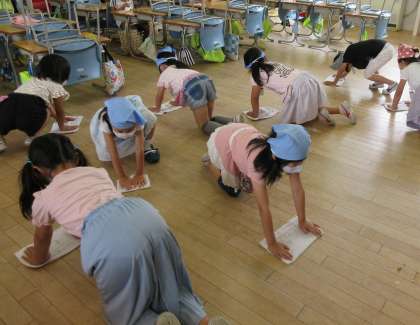 今日から美化委員会の「もくどうがんばろう週間」が始まりました。今日は、くじけないで我慢する心をみがこうと、黙って一生懸命に掃除をすることに挑戦しました。少しずつ上手になってきましたよ!