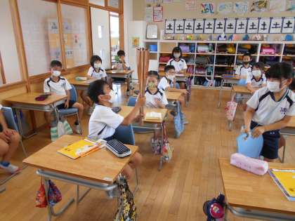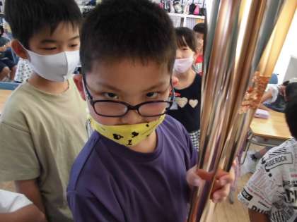 聖火ランナーに選ばれた東部小の卒業生が、聖火トーチを小学校に持ってきてくださいました。貴重なものを持たせていただき、子供たちは目を輝かせていました。