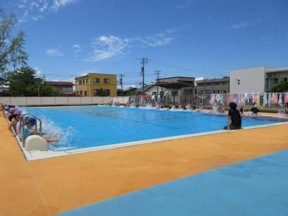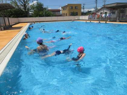子供たちが待ちに待っていた水泳学習が始まりました!水中ジャンケンをしたり、水に体を浮かせたりしました。久し振りの水泳学習に、「楽しかった!」とみんな笑顔でした。