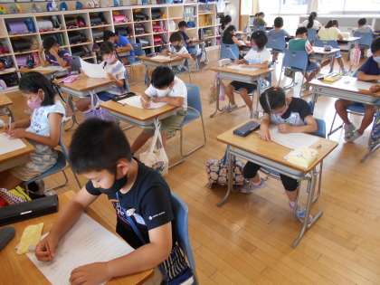 1学期もあと少しとなりました。先週から、学期のたしかめテストを行っています。みんな真剣な表情で取り組んでいました。