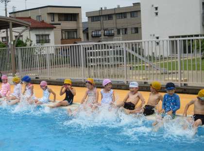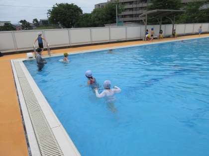 3組もプールに入りました。初めてのシャワーや大きなプールに、子供たちは大喜びでした。プールの端から端まで、全員が歩いたり泳いだりしながら渡ることができました!