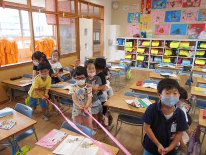今日は、それぞれ役を決めて大きなかぶ(先生)を