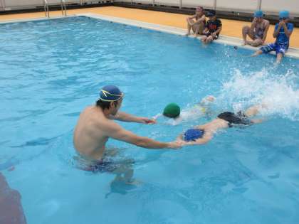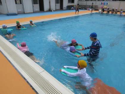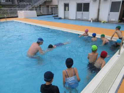 今日から二日間の水泳教室です。チームに分かれて、それぞれの目標に向かって頑張りました。「レベルアップできたよ」と子供たちは言っていました。明日も頑張ろう!