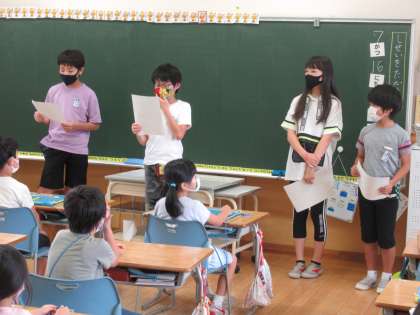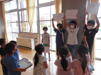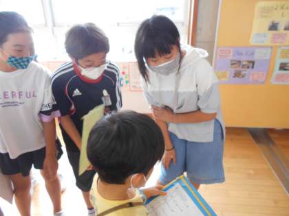 今日は1年生と一緒に活動するために企画した、学校探検クイズラリーを実施しました。6年生は校内のいくつかのチェックポイントでクイズを出し、1年生に答えてもらいました。1年生がとても楽しそうに参加してくれたので、嬉しい気持ちになりました。最後に手作りの栞をプレゼントしました。