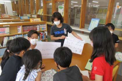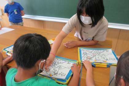 1年1組のみなさんに学校探検をしながらクイズラリーを楽しんでもらいました。クイズを出題したり、スタンプカードにスタンプを押したりして、お兄さんお姉さんらしく優しく接していました。