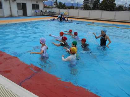 今月は指導員の方をお呼びして、水泳教室を行いました。グループに分かれて、自分の力を伸ばそうと、子供たちは楽しく集中して取り組んでました。教室の時間はあっという間で、「もっと習いたかった!」と子供たちの声が聞こえてきました。子供たちにとって、泳力を伸ばすきっかけになったらいいなと思います。