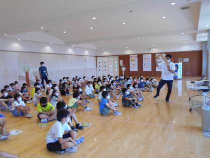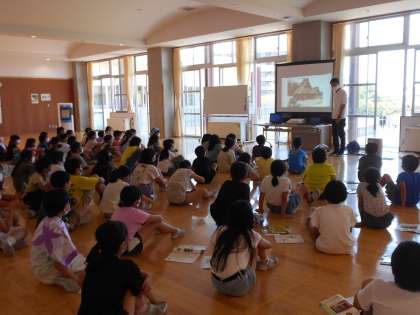 子供たちは音楽の学習で、こきりこについて学習しました。今回は飯波先生が旧上平村出身ということで、「ささら」を使った踊りを披露していただきました。子供たちは実際にささらを鳴らしてみたり、こきりこが伝わる地域について話を聞いたりしながら、こきりこに親しんでいました。
