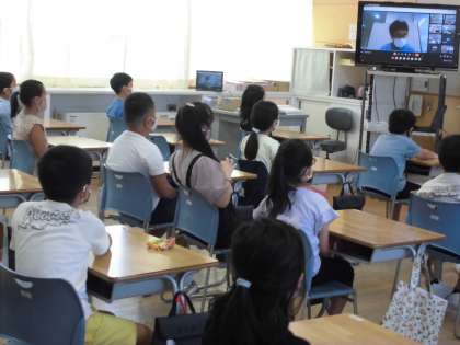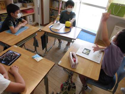 2学期が始まりました。久し振りに友達に会い、夏休みの思い出話を聞いて、楽しそうでした。また、お互いの自由研究を見せ合いました。友達の作品に興味津々で見入っていました。