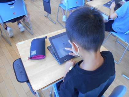 算数で、一万より大きい数の仕組みを学習しました。来週のテストに向けて、自分のペースで学習する時間をとりました。苦手なところを質問したり、友達と一緒に考えたり、Chromebookでの問題に取り組んだりと、様々な活動をしていますが、みんなとても真剣な表情で、自分の学習を進めていました。