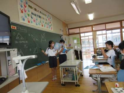 算数科「図形の角」の学習では、自分のペースで進めたり、友達と教え合ったりしながら学習を進めてきました。振り返りでは、これまで学習してきたやり方を友達に伝え合ったり、新たな発見を見つけたりする時間になりました。