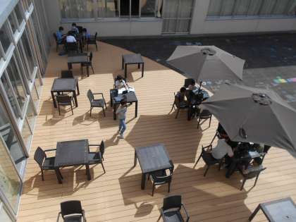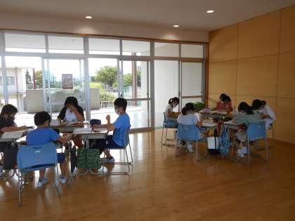 子供たちが自分で場所や方法を選んで進める学習に取り組んでいます。ワークスペースで机をグループにし、友達と相談しながら学習を進めたり、音楽ではのびのびと聴くために、外のテラスでパソコンを用いて視聴したりしています。今後も子供たちの「やってみたい」「こんな方法でやってみよう」という意欲が高まるように活動の場を整えていけたらと思っています。