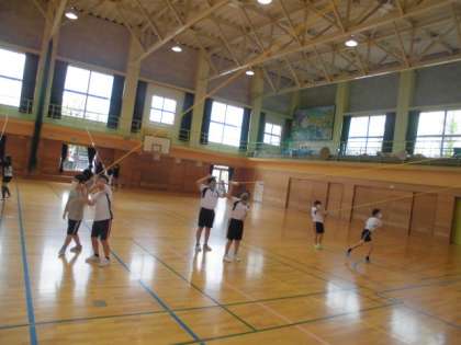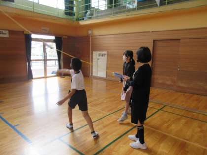 来月の記録会に向けて、パワーアップTOBUに取り組んでいます。今日は、遠くにボールを飛ばせるように意識して、バトンスローに取り組みました。