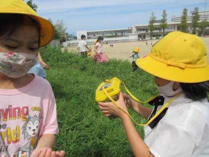 子供たちは、バッタが高く跳ねたり飛んだりする動きに驚いていました。