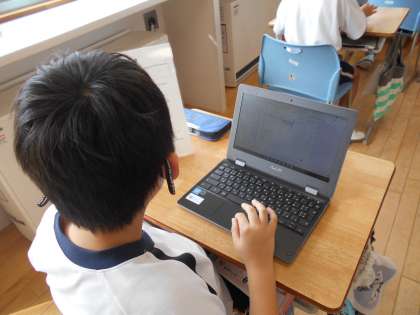 子供たちは、どんどんパソコンを活用しています。係活動では、パソコンでアンケートをつくることにチャレンジしました。アンケート結果から、楽しい企画を考えるようです。