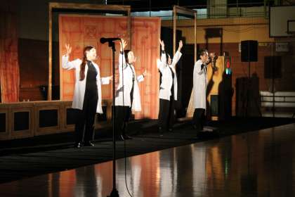 2学年ずつ3公演で影絵のすばらしさを味わうこと