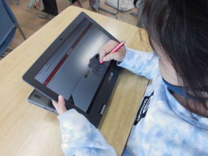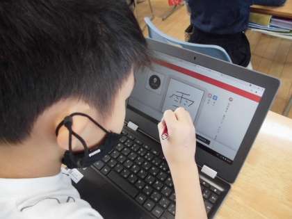 子供たちに、パソコンの学習で使うタッチペンをお渡しました。クラウドドリルで漢字を書くとき、文字入力をするときなどに使っていきます。