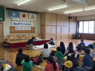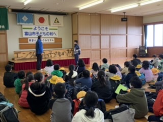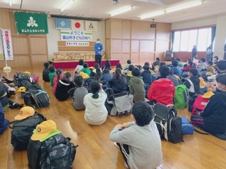 子どもの村に到着しました。入所式、オリエンテーションで子どもの村での過ごし方やきまりについて、所員の方にお話を聞きました。楽しい2日間になるよう、安全に気をつけて過ごしましょう。