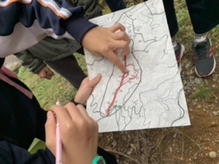 みんなで地図を見ながら進んでいます。時間内にポイントをいくつ見つけられるでしょうか。