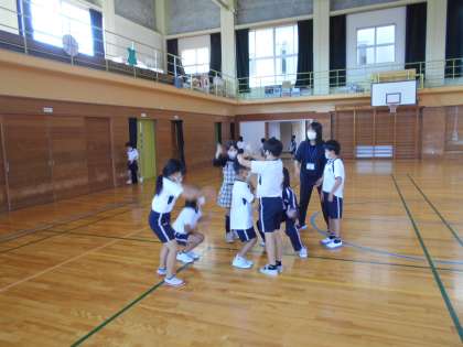 団毎でテーマを考えた作品づくりでは、「こんな動きはどうかな」と次々に意見を出し合っていました。完成が楽しみです。
