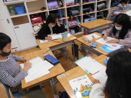 算数の自由進度学習では、教科書・ドリルの範囲を終えた子供たちが、小数の理解を深めるために、できることを見つけ始めました。友達とテストを作り合って、確かめを行う姿が見られました。