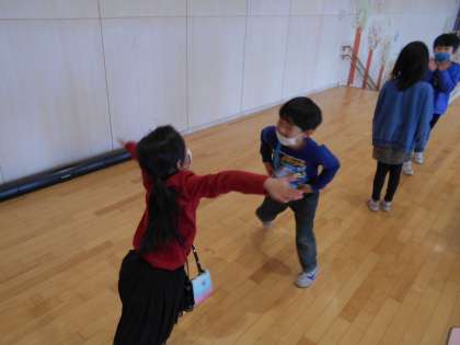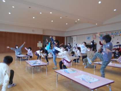 友達の呼びかけと声も身振りもそっくりに返しました。大盛り上がりです。