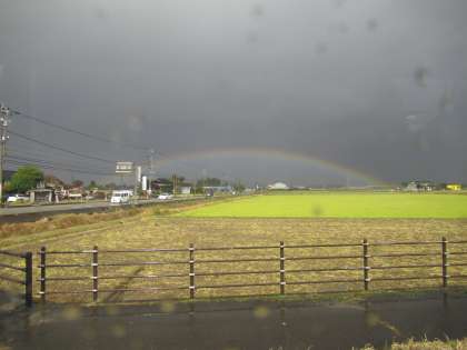 今日は、あいにくのお天気でしたが、バスに乗っていると晴れ間に綺麗な虹を見ることができました。子供たちから大きな歓声が上がりました。