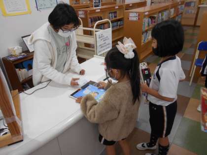 1年生 チャレンジ!いきなりくじびき 公開日 2021/11/16 更新日 2021/11/16 1年生のページ 図書委員会さんのイベントで今週から「いきなりくじびき」が始まりました。 本を借りるとくじが引けて、3冊貸出券やしおり作成券が当たります。 子供たちは今日の休み時間に本を借りてくじを引くことをとても楽しみにしていました。 なかなか当たりませんでしたが、当たった子が大よろこび。当たらなかった子も「楽しかった、また次も楽しみ!」と言っていました。