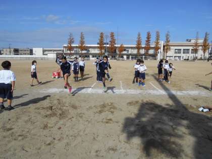 体育の学習で、外で走り幅跳びの練習を始めました。最後の踏切に力を入れて、何度も練習をしました。思いっきり跳ぶことが、とても気持ちよかったようです。