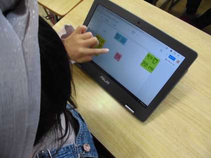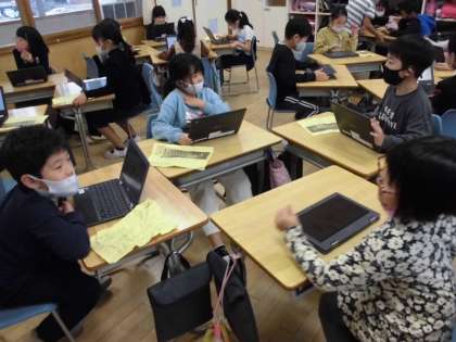 生活科の学習で、1、2学期を振り返り、できるようになったことを発表しました。パソコンを使って意見を出し合った後、班ごとに、自分の頑張りを紹介したり、くわしく聞きたいことを友達に質問したりしました。