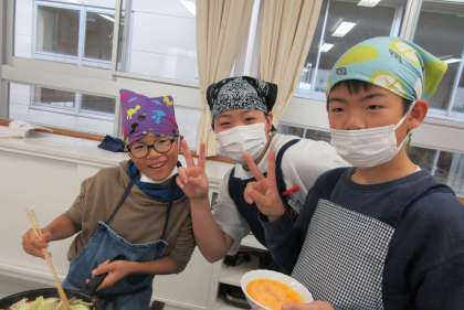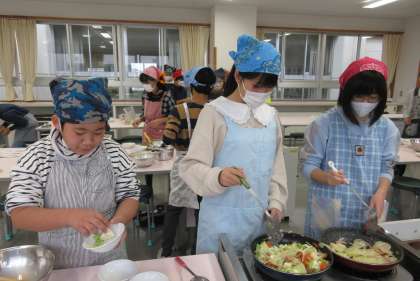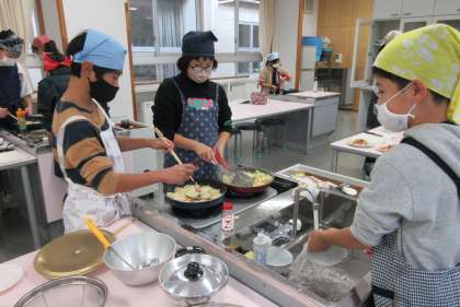 家庭科の時間に「豆腐のチャンプルー」と「ベーコンポテト」を調理しました。たくさんの食材の下ごしらえをてきぱきとしたり、調理と片付けを同時に進めたりするなど、手際よく活動する姿に、さすが6年生と感心しました。