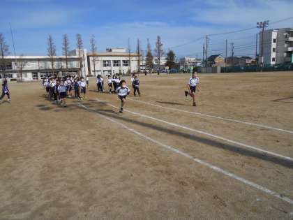 体育で練習してきた走り幅跳びの記録を測りました。自分に合った助走の距離を考えて、思いっきり跳びました。