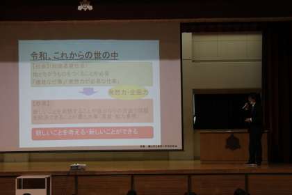 校長先生のお話から、一人一人が自分で考えて行動することが大切さであると考える時間になりました。