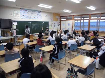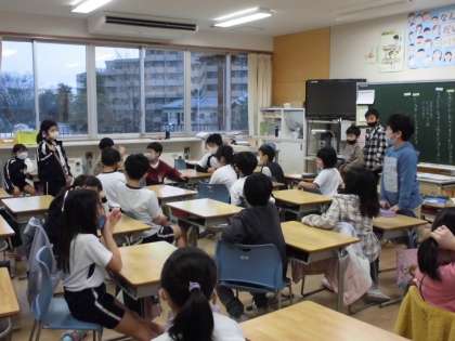 これまで、2学期末に開くお楽しみ集会に向けて、めあてや集会名、プログラム等を話し合ってきました。今日は、いよいよ来週に迫った集会に向けて、みんなで遊ぶゲームの内容について話し合いをしました。司会の子供が中心となって、友達の考えを聴き合っていました。