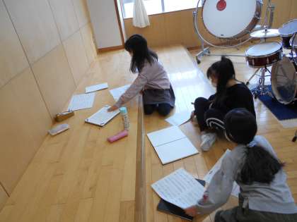 パート毎に、楽譜をよく確かめながら練習に励んでいます。