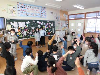 2年生 お楽しみ集会をしたよ 公開日 2021/12/23 更新日 2021/12/23 2年生のページ 今日、2組では「思いやりにこにこ大すきいっぱいしゅう会」を開き、「ウボーイじゃんけん」と「新聞紙ゲーム」をしました。これまで話し合ってきたことを生かして、みんながにこにこになれるように、思いやりもって楽しく遊びました。自分たちで企画した集会が成功して、とても嬉しそうな子供たちでした。