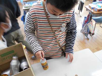 理科の学習では、磁石の性質について実験をしています。鉄を引きつける力や同じ極同士は退け合う力など、いくつもの磁石の力を見つけています。