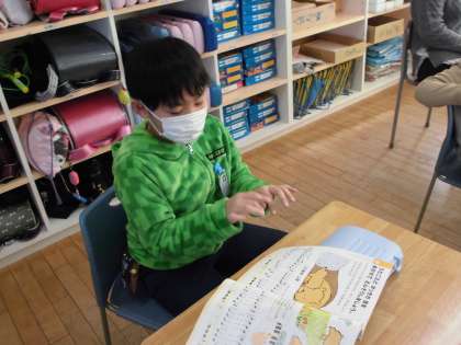 音楽科の時間に「エンターテイナー」という曲の鑑賞をしました。「知ってる!」「聴いたことがある!」という子供が多く、リズムに合わせて身体を動かしながら、楽しんで聴いてました。「よびかけと答えになっている部分があるね」「繰り返しのリズムが面白いな」と、感じたことを伝え合いました。
