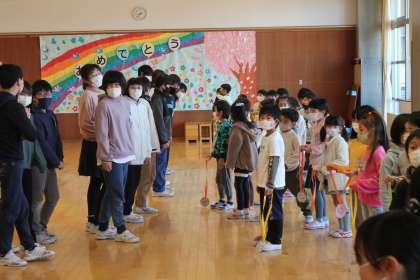 「卒業を祝う会」につけていってもらえるよう、事前に贈呈式を行いました。