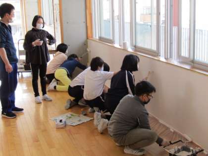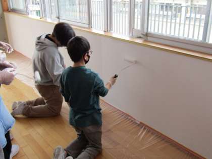 いつの間にか汚れてしまった教室前の壁のペンキ塗りをしました。はみ出さないように気を付けながら、白いペンキを丁寧に塗りました。6年間お世話になった学校をほんの少しですが、きれいにすることができました。