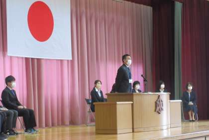 まず着任式が行われました。新しく学校に着任した教職員が一人ずつ挨拶しました。
