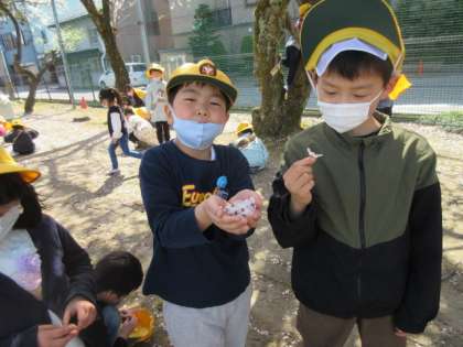 晴れていたので、外で元気に遊びました。友達と仲よく遊んで、楽しく過ごせましたね。