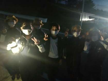 最初はまだ明るい道ですが、どんどん暗くなってきました。本日最後の活動です。