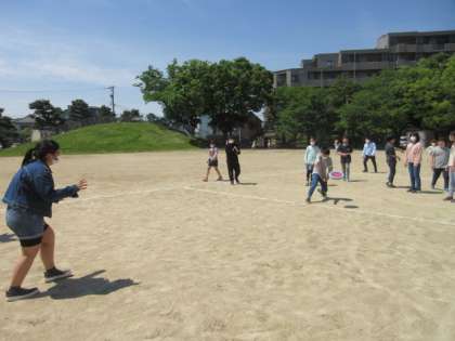 イベント係の企画で、コミュニケーションタイムにフリスビードッヂをしました。相手を思いやりながら、みんなで楽しく遊びました。クラスの友達との仲が、さらに深まったようです。
