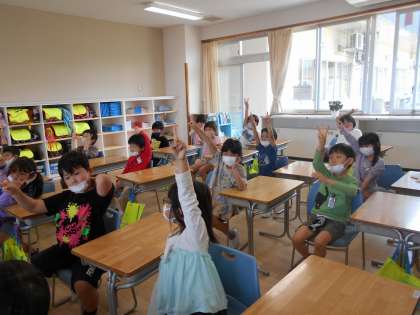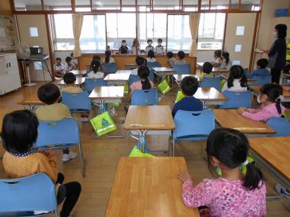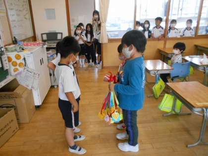 学校となかよしになるために、2年生が、学校紹介クイズをしてくれました。特別教室のクイズ、先生についてのクイズなど、東部小学校について学ぶことができました。メダルとあさがおの種のプレゼントもありました。子供たちはとてもうれしそうでした。