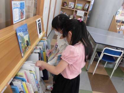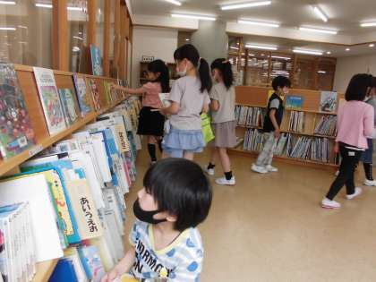 図書室で本を借りました。絵本や虫の本など自分の興味のある本を見付けていました。友達から「おもしろかったよ」という本を選ぶ子もいました。これからもたくさんの本を読んでほしいです。